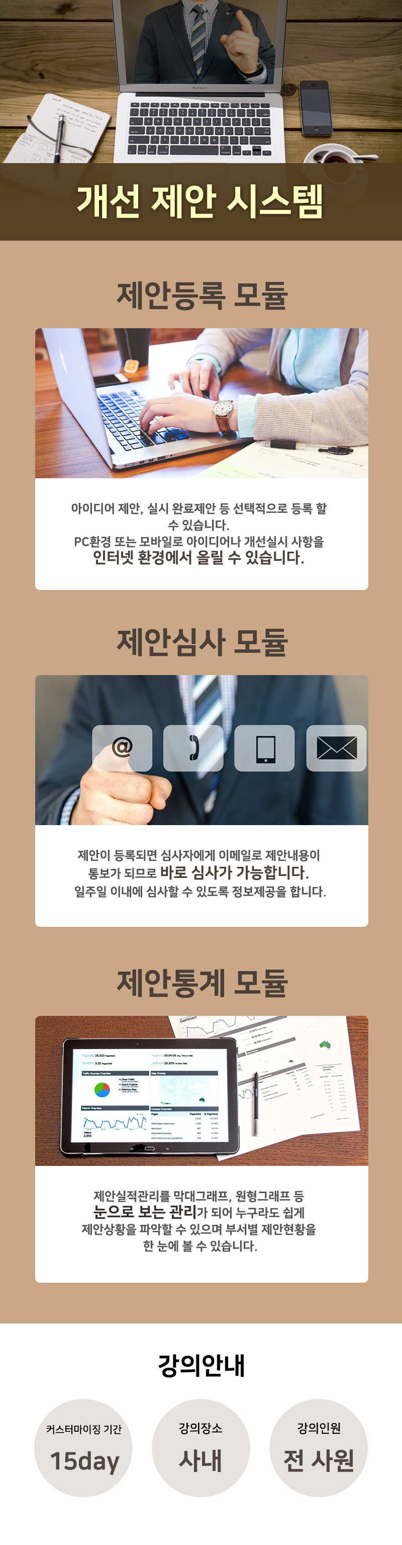 수기(手記) 중심의 비효율적인 제안 관리 방식은 담당자의 행정적 부담을 가중시켜 제도의 활성화를 저해하는 주된 요인이 됩니다. 개선제안 전산시스템은 제안의 접수, 심사, 평가, 포상에 이르는 전 과정을 자동화하고 체계적으로 관리합니다. 이를 통해 담당자는 불필요한 행정 업무에서 벗어나, 제도 홍보, 우수 제안 발굴, 개선 활동 지원 등 더욱 가치 있는 일에 집중할 수 있습니다.